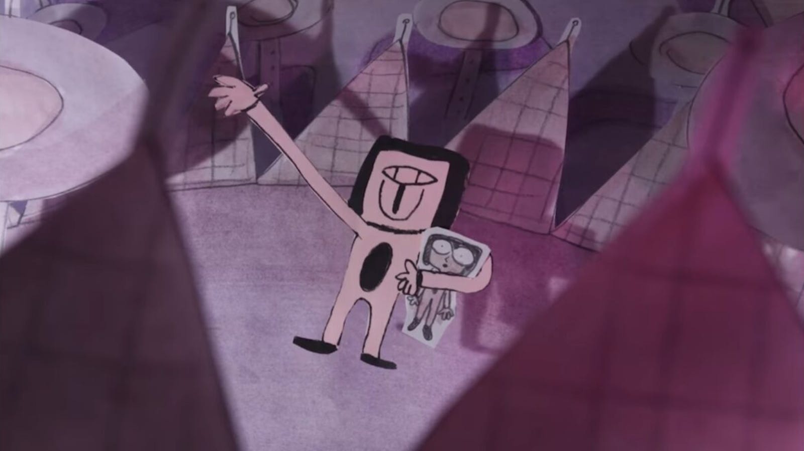 I imagine that, for some, The Final Exit of the Disciples of Ascensia will be an eye-opening film. An artistic catalyst of the highest order and something that manages to somehow, inexplicably, shed new light on modern malaise. I defy you to watch this and not feel stirred. At first, you might be tempted to take a look at a few images from the film and write it off as something of an experimental student film. As if rather than it being a short movie, it’s a very long project. Nope. It takes about a minute for you to forget that you’re watching animation that makes no attempt at realism. Landscapes, emotions, body movement, cityscapes, perspectives in rooms, transitions: this film is a testament to the suggestive power of animation, sound design, and great storytelling. It’s also funny, just like this t-shirt that you can buy on Jonni Peppers’ website. The backstory of one of Ascensia’s followers and how she came to compete at the Olympics before joining the group is a story you’d expect to hear from a friend at 4 in the morning. You’d choke on whatever you were drinking at the sheer audacity of its telling. The feel of a story that, before seeing The Final Exit, I would’ve thought impossible to capture on film.